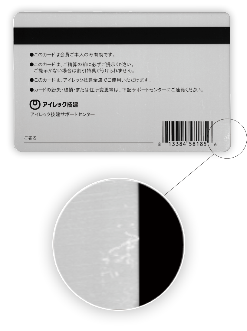 印刷位置、磁気ストライプの位置などを測定し、管理することができます。もちろん測った長さが基準内に入っていない場合に不良品として判定することもできます。